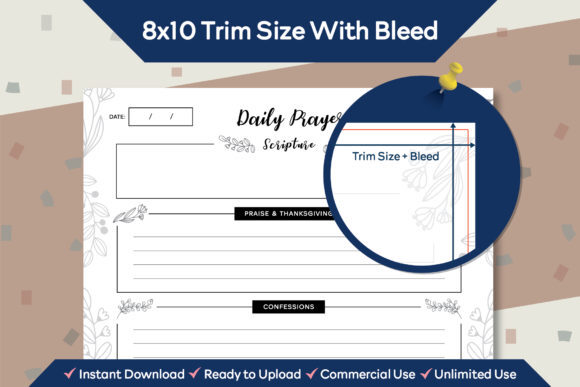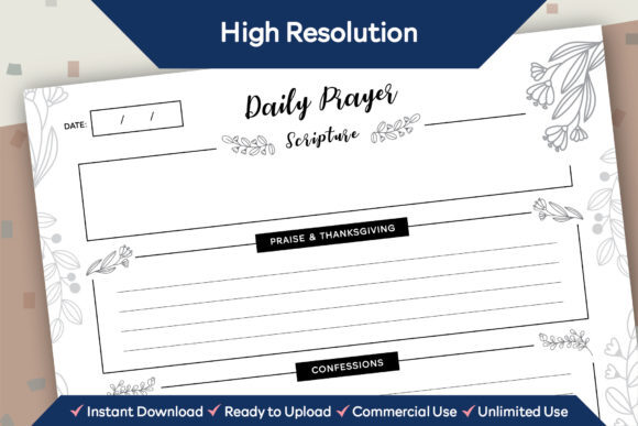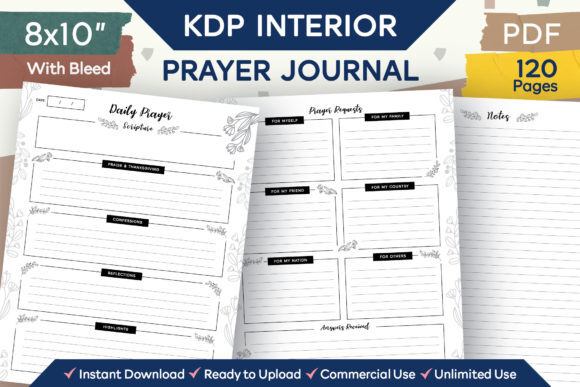A simple and easy-to-use Prayer Journal template for uploading on Amazon KDP. Each daily prayer has three pages.