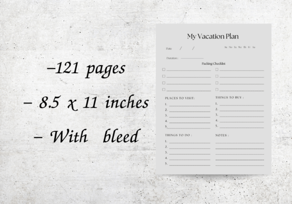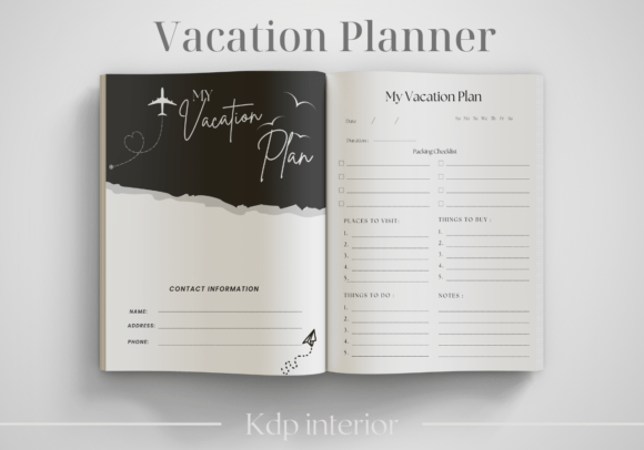 Vacation Planner KDP interior for your low content or no content book. This is a digital product to be downloaded and printed.